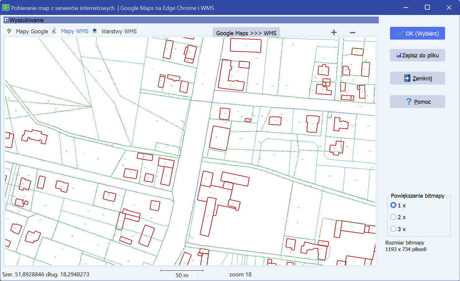 25 sierpnia 2021 r. | Ponieważ od sierpnia 2021 r. Google Maps wycofują się z obsługi przez wbudowanego w Windows Internet Explorera, został opracowany nowy moduł do pobierania map z Internetu, wykorzystujący przeglądarkę Edge Chrome. Widok okna. | |